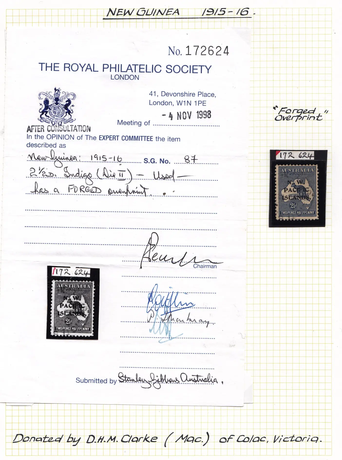 Founded over 120 years ago, the RPSV believed it was important to build and maintain an extensive forgeries collection, especially when the RPSV commenced their expertisation service in 1950.