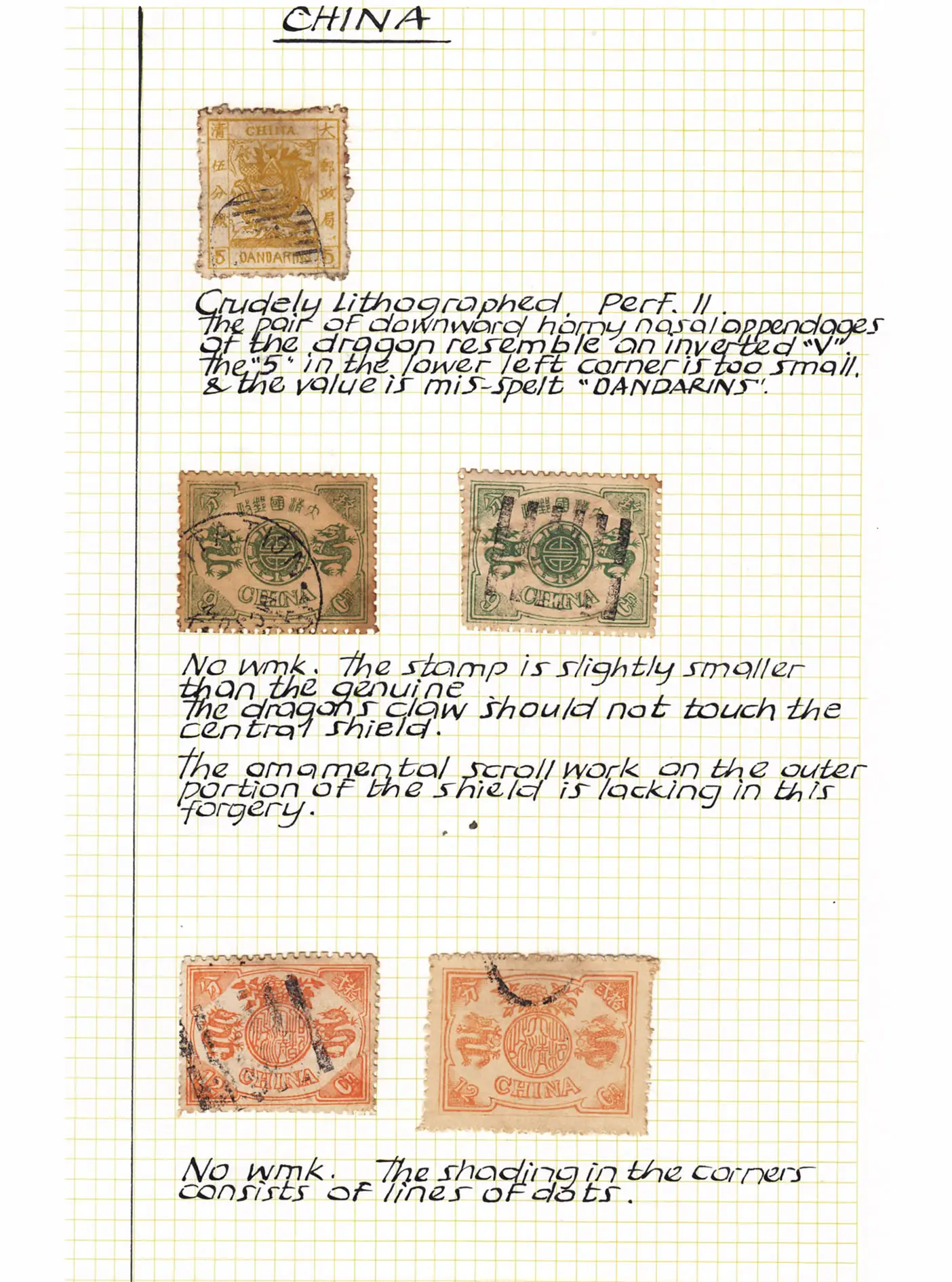 The forgeries collection is in twelve volumes, with Volume 1 devoted to Australia and the colonial issues. Volumes 2-4 cover Great Britain and the British Empire. Many other countries are represented in the other eight volumes, including many Sperati forgeries. Many genuine stamps are mounted alongside the forgeries. The contents were primarily donated by members over the years, with some examples that received negative opinions from the Expert Committee over the years. Other genuine stamps showing masterful repairs or stamps enhanced by chemical improvements are showcased to highlight what it is possible to produce by unscrupulous forgers.